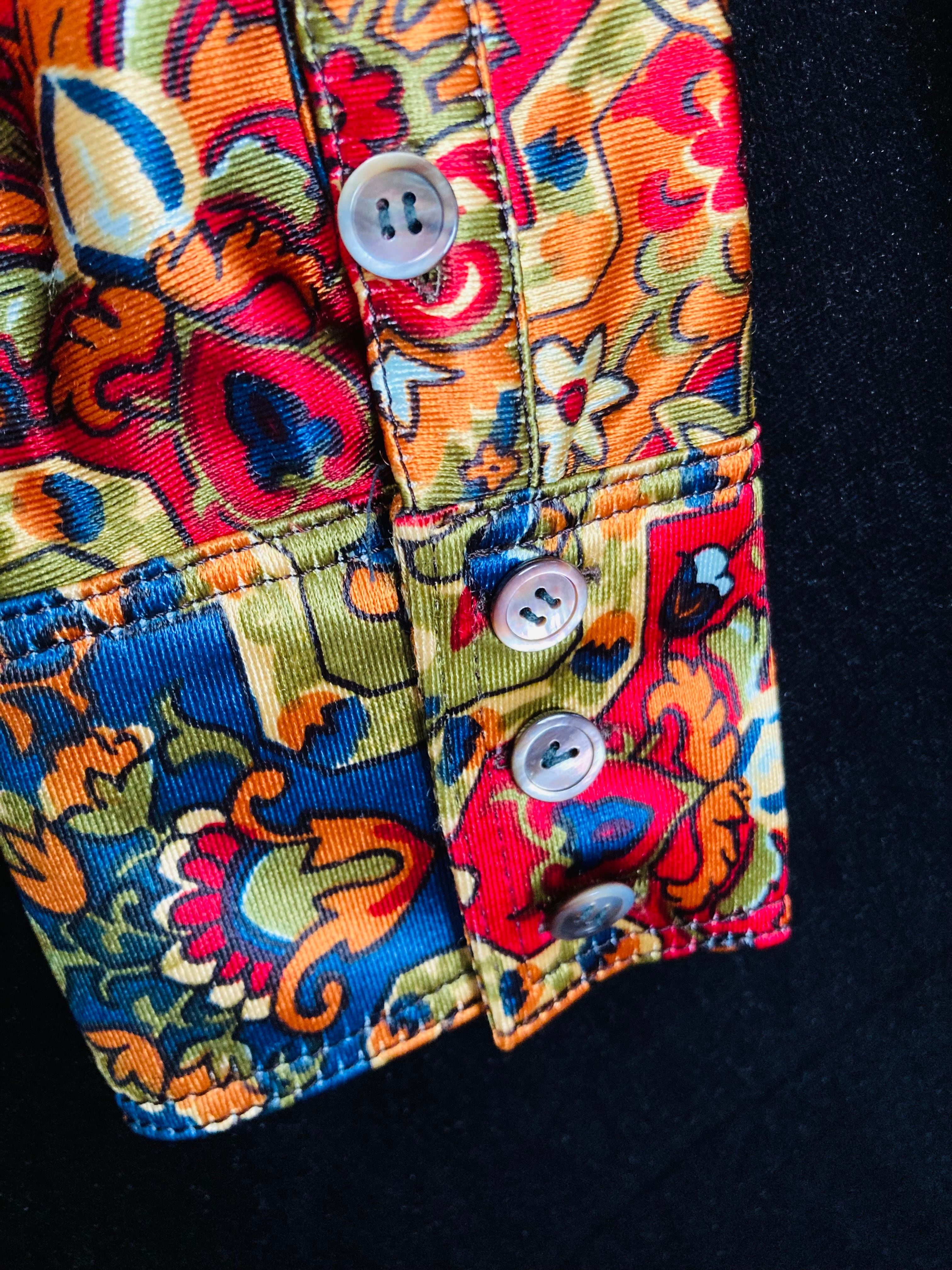 タイトなつくりで丈は長めです。ボタンはシェルです。